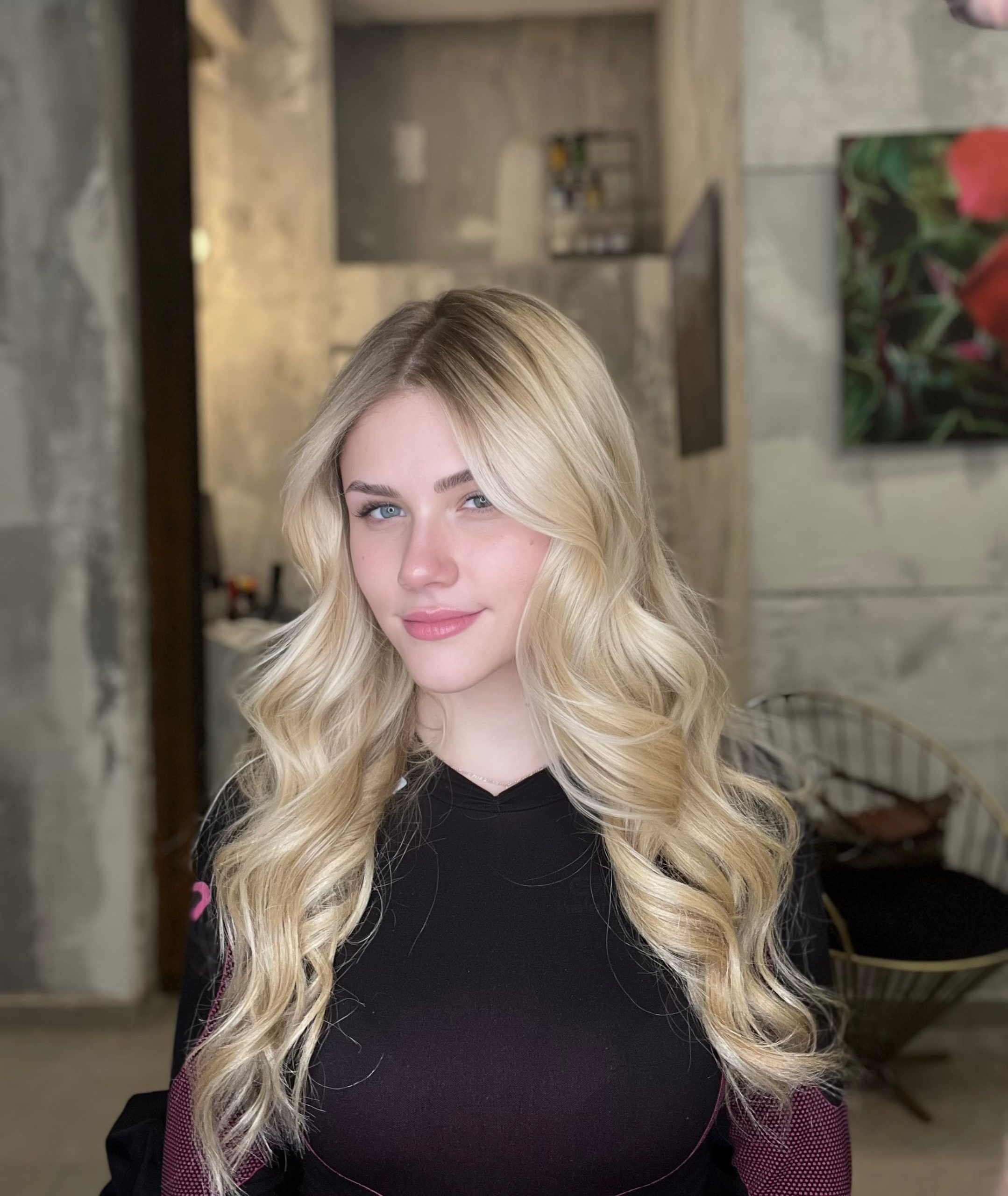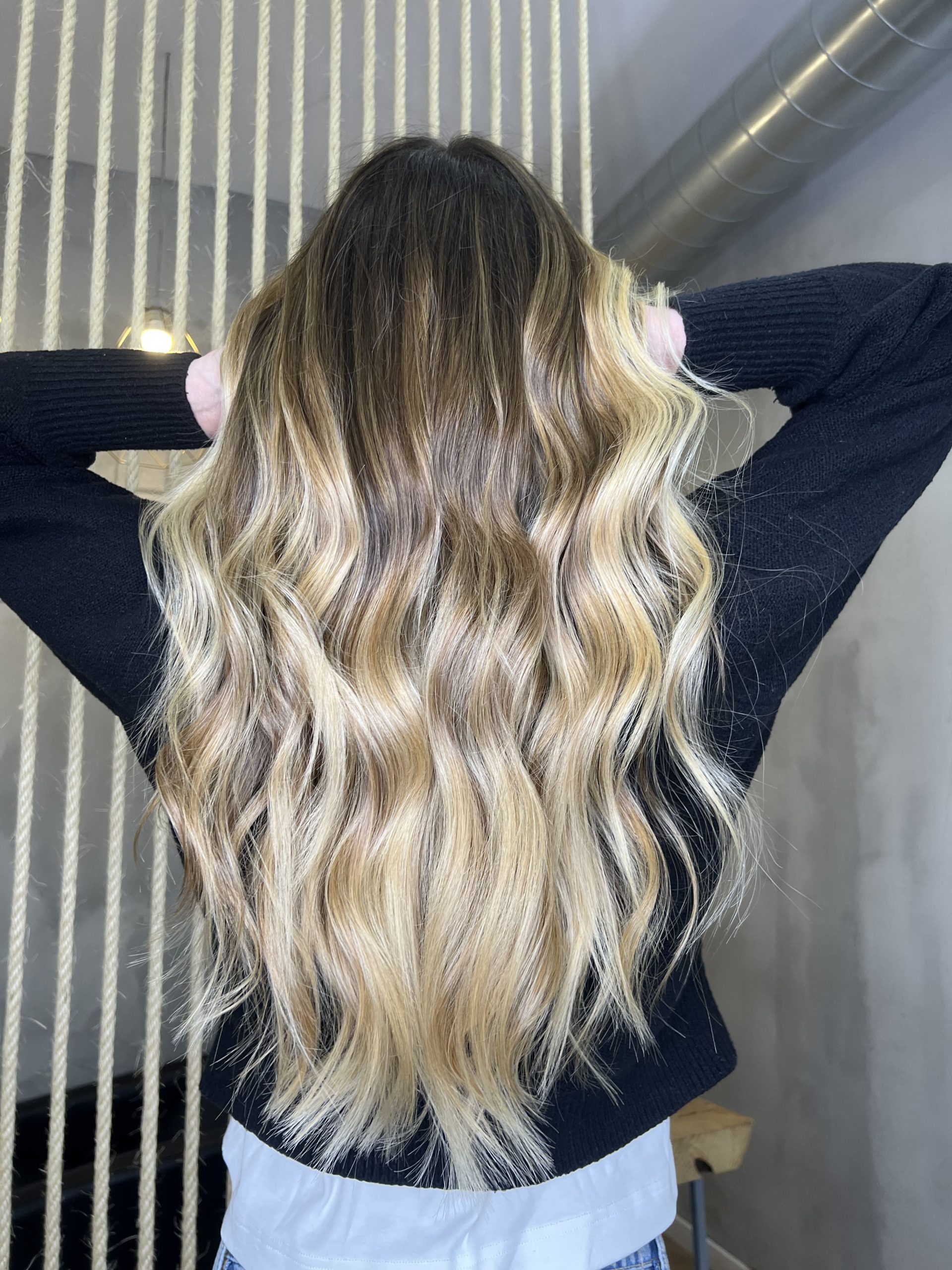 ¿Sueñas con un rubio luminoso y natural que parezca besado por el sol? Nuestro balayage rubia realza el cabello rubio con una transición suave y destellos estratégicos.